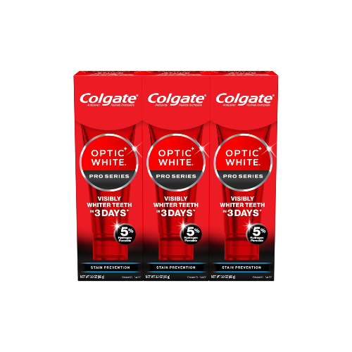 Achieve a brighter, whiter smile with Colgate Optic White Pro Series, the advanced whitening toothpaste that works to remove deep stains and prevent new ones from forming. Each 3-pack includes three 3.0 oz tubes, providing long-lasting whitening power for your teeth. With Colgate Optic White Pro Series, you can enjoy visibly whiter teeth and stain prevention with every brush.
